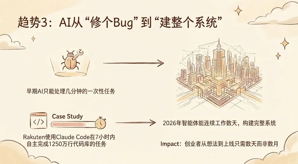 到2025年底,越来越厉害的AI智能体已经能花好几个小时,产出完整的功能集。