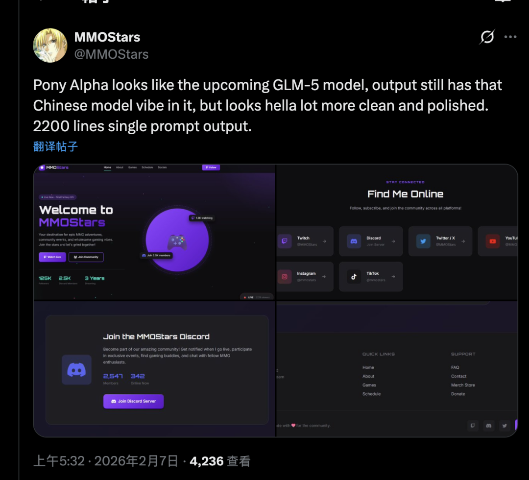 与此同时,OpenRouter平台上突然出现的神秘匿名模型「Pony Alpha」,编程和推理能力极为强劲,被社区91%以上的用户判断为GLM-5测试版。