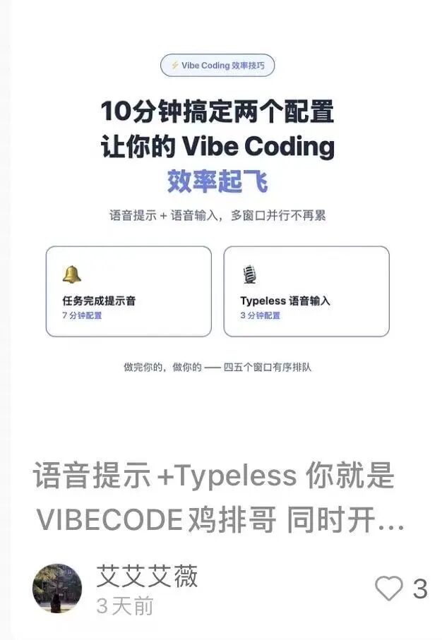 在小红书上,甚至还有大神网友直接把Typeless用进了Vibe Coding场景里,拿它来写prompt,反馈是顺手又高效,用语音反而更容易进入状态: