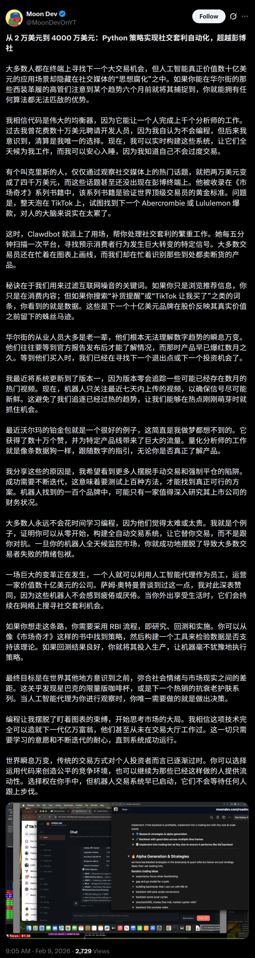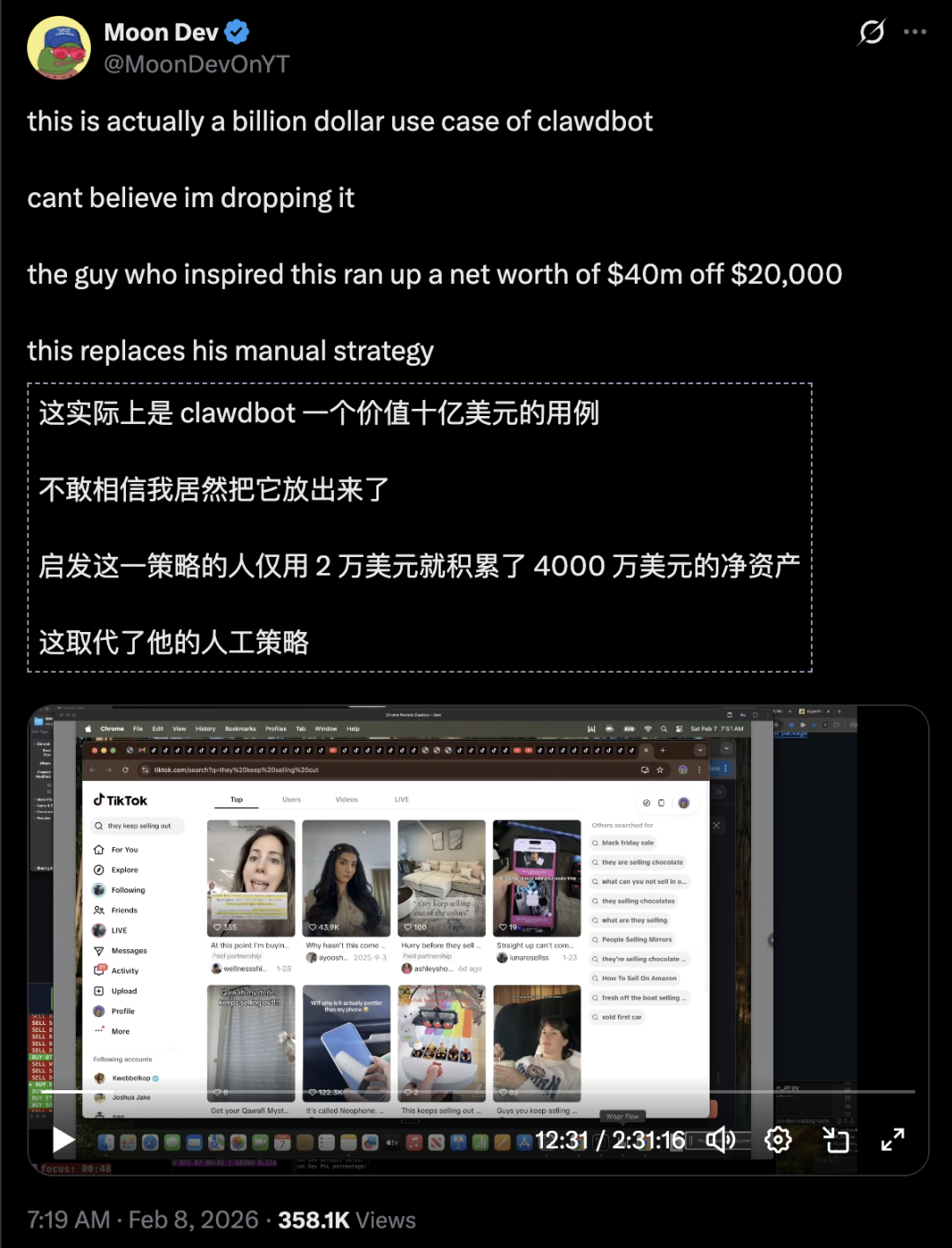 一个普通人用TikTok+OpenClaw,把华尔街按在地上摩擦。