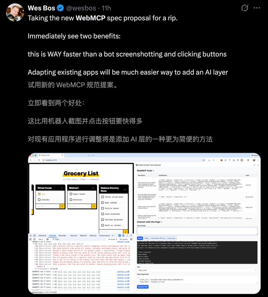上手试过的开发者惊叹,立即发现了WebMCP两大好处。
