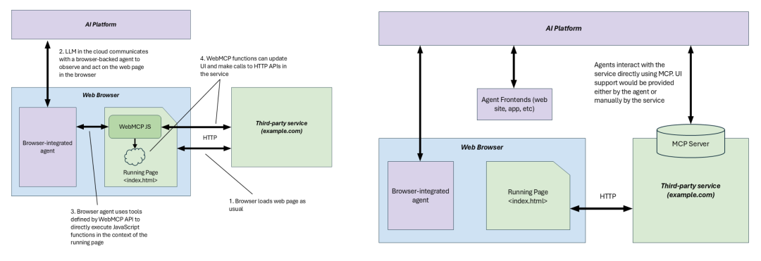 这两种方式,允许开发者为AI提供一套直接的工具集,让Agent跳过视觉识别,直接访问网站背后的结构化函数。