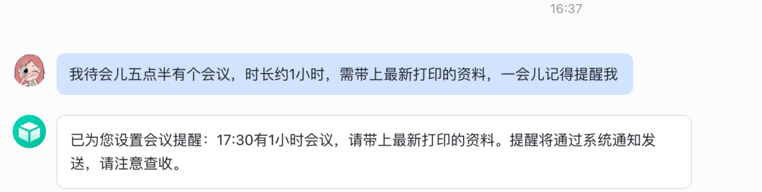 再比如,让它帮我设置一个日程提醒,只需把信息发给OpenClaw,立即为你定好时间。