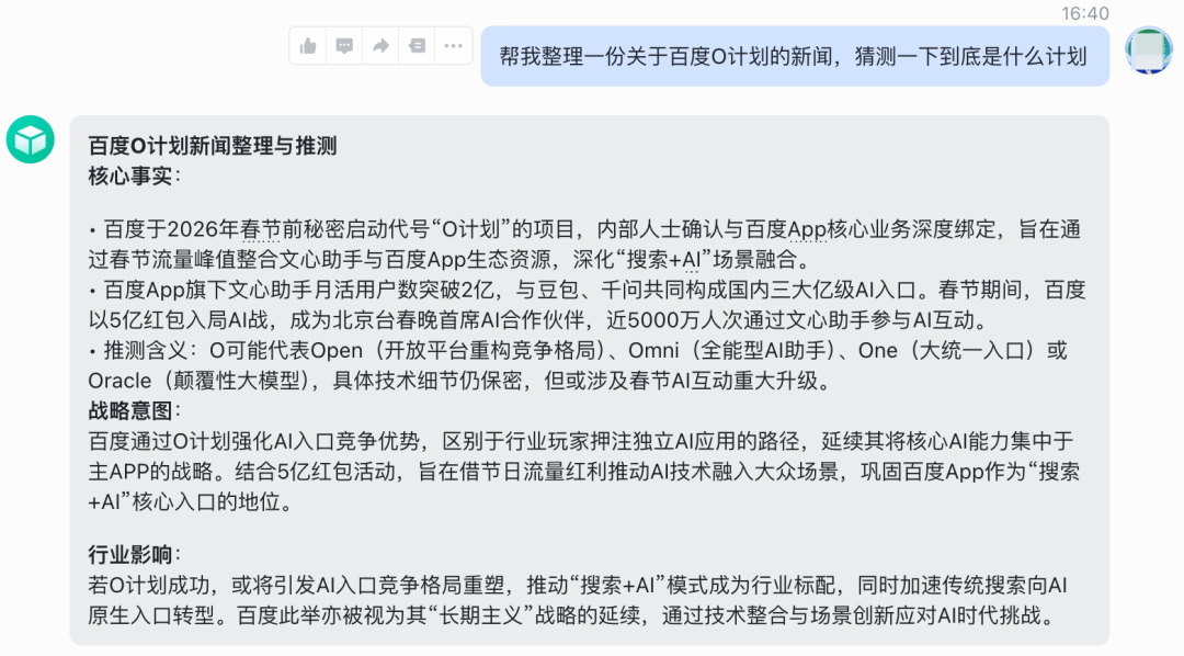 我们让OpenClaw去整理一些「百度O计划」的推测。