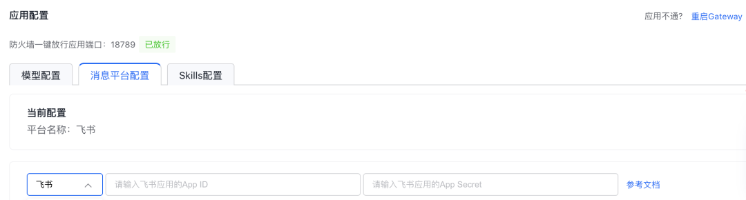 原本的消息平台配置,如接入飞书、钉钉,Skills加载等环节都是互相独立的。