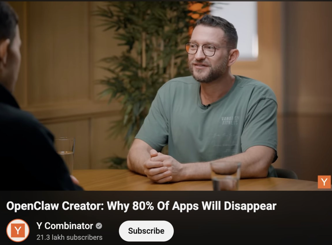 甚至,Peter Steinberger在YC采访中直言不讳,未来80%的应用都会消失。