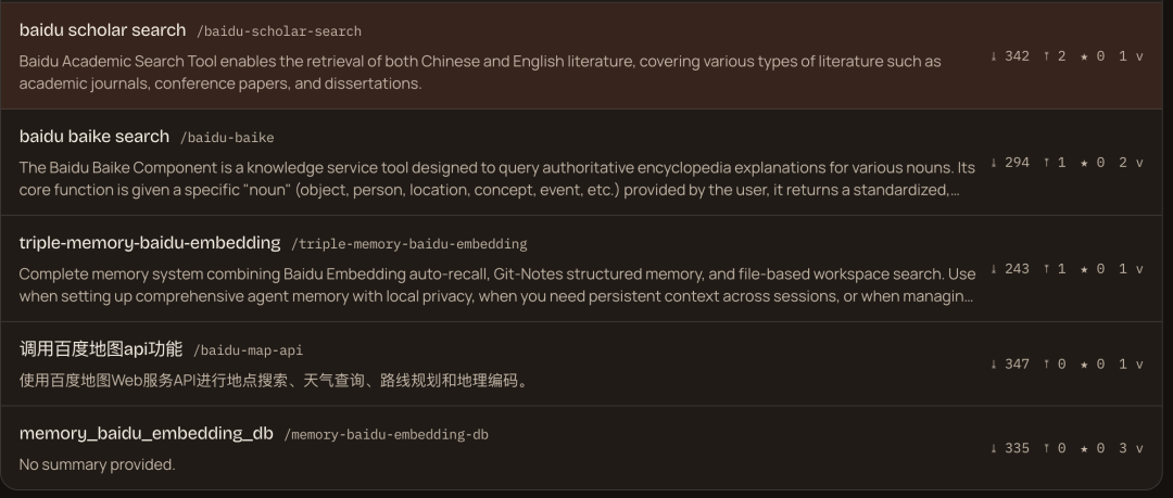 在ClawHub中,以npx clawhub@latest install [skill名称]的极简方式,就可以为自己的OpenClaw助手接入来自百度官方的稳定、权威能力。