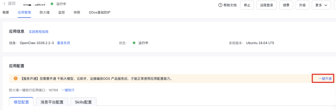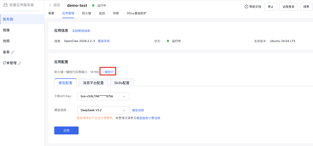 第二步,无需脱离服务器后台页面,百度已经做好了「一键开通」和「一键放行」功能。