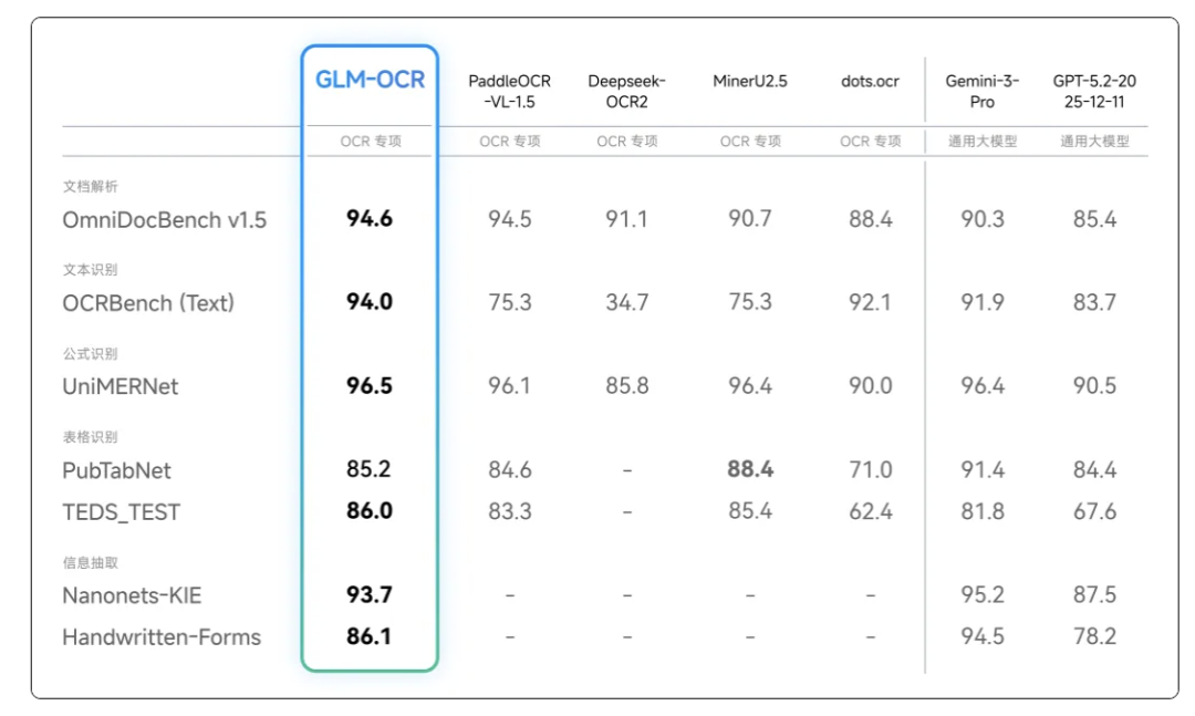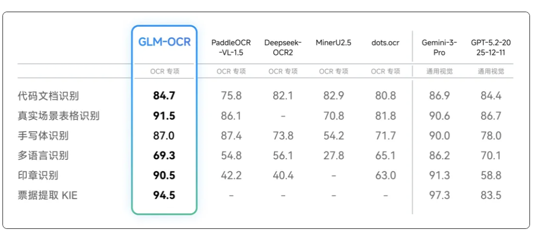 这不,就在前两天,智谱也下场整活儿了,发布了自家的「GLM-OCR」开源模型~