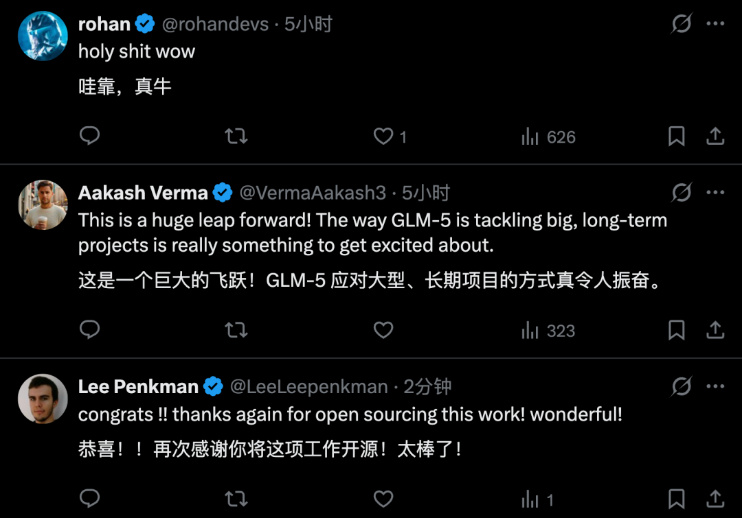 但毕竟Claude Opus是闭源,护城河一下子被GLM-5这个开源模型给端掉,也是引得不少网友欢呼: