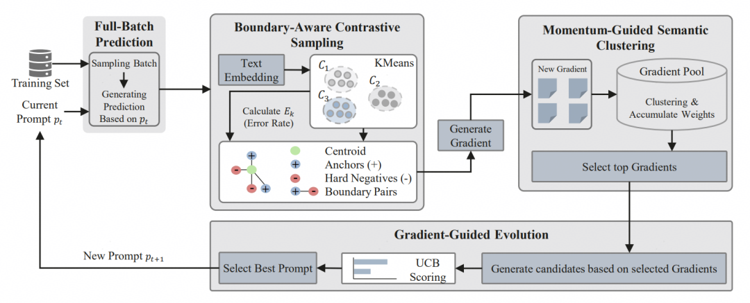 此外,研究人员还提出了“大模型prompt优化器”C-MOP,通过创新的样本选取与梯度更新策略,解决了“文本梯度”的冲突问题,实现了基于正负例反馈的prompt自动优化,真正做到了“反馈->演进”的prompt优化闭环。