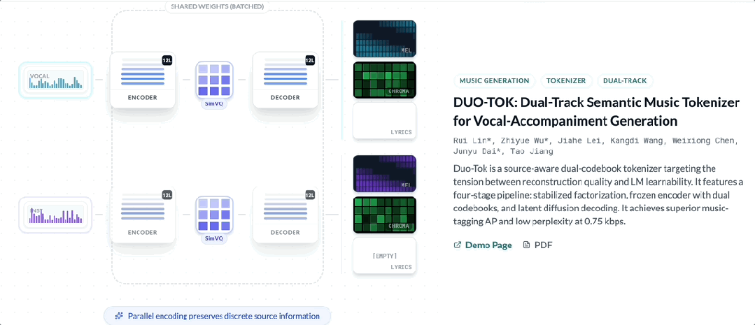 通过引入团队自研的双轨建模机制[1],音潮V3.0将人声与伴奏拆分建模,在不同语义空间中分别学习特征,再在高层结构上完成融合。
