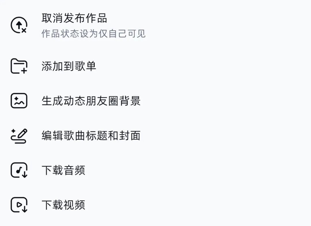 顺便一提,音潮生成的所有歌曲,都能直接下载音频或视频,视频还会自动配AI生成的封面,可编辑歌名,发圈超方便。