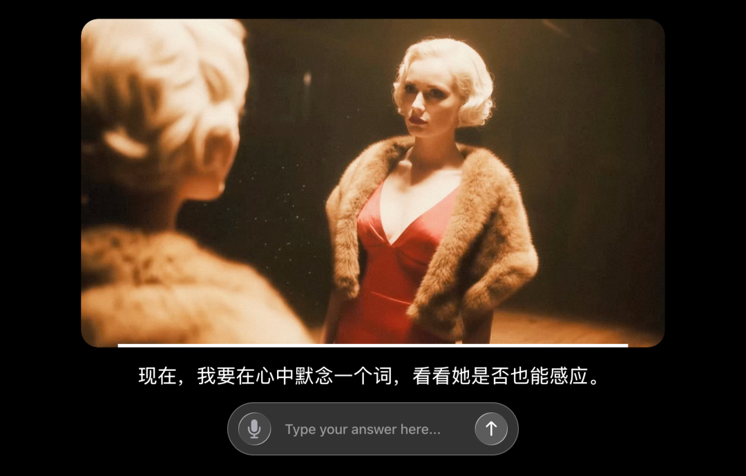 David:是的,这也是由创作者自己决定的:哪部分是由我预设的「血肉」,哪部分是由观众输入的「血肉」来填充。观众的每一次输入,都可以通过语言模型进行判断,你可以选择让它在既定分支上做选择,也可以让它完成多模态的生成,无论是视频、音频、文字还是图片。它不一定只是生成一段视频。比如,你也可以把剧情设计成与角色对话,我输入的语言通过模型处理后,生成角色的回应。你也可以让我输入的内容在后续剧情里变成一条飘过的弹幕。这都取决于创作者的意图,你的想法有多丰富,完成度就有多高。