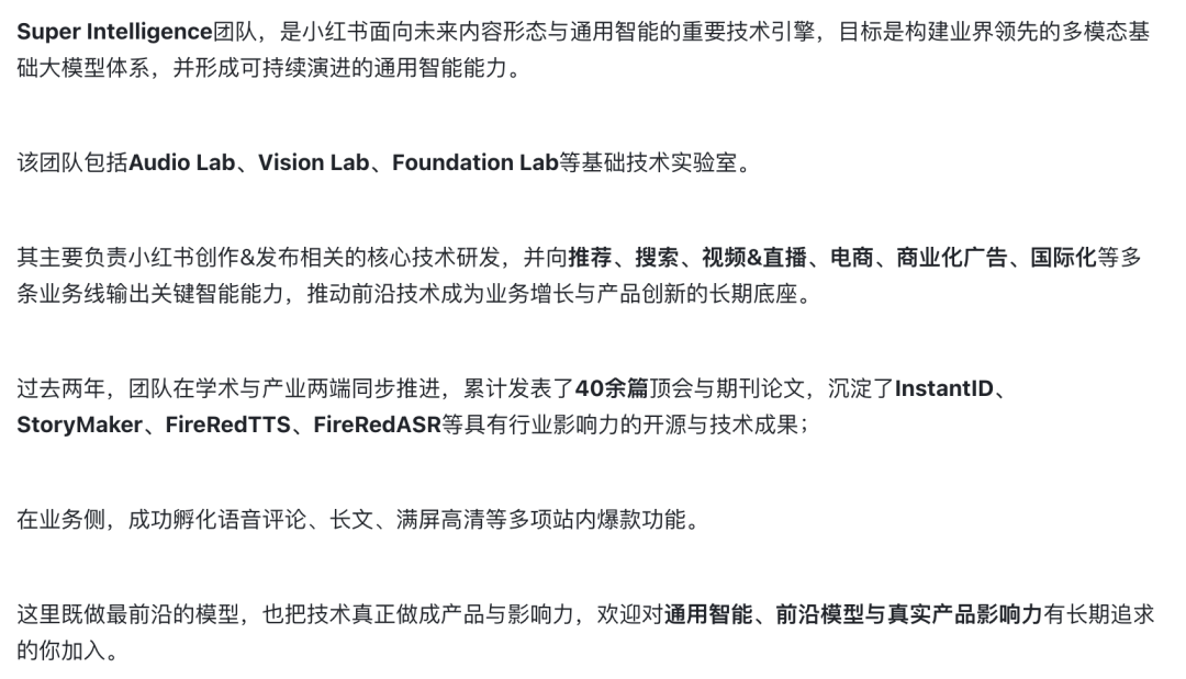 以下是小红书Super Intelligence的团队介绍: