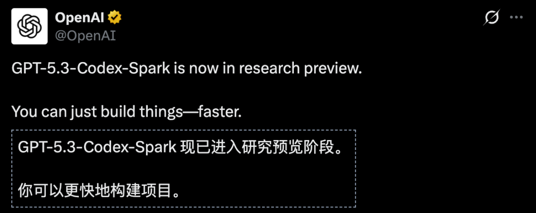 【新智元导读】OpenAI深夜突袭,GPT-5.3-Codex-Spark正式炸场。核心卖点只有一个:快!每秒1000个token,让代码生成告别加载条。联手Cerebras怪兽级硬件,物理外挂直接拉满。这不再是简单的工具升级。而是一场关于速度的暴力美学。