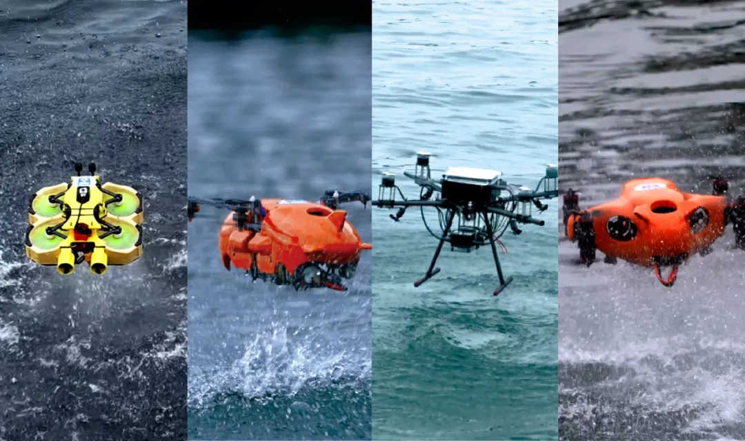 在天上,它是无人机,续航10分钟;一头扎进水里,它就是潜航器,能潜航30分钟,最大潜深10米。