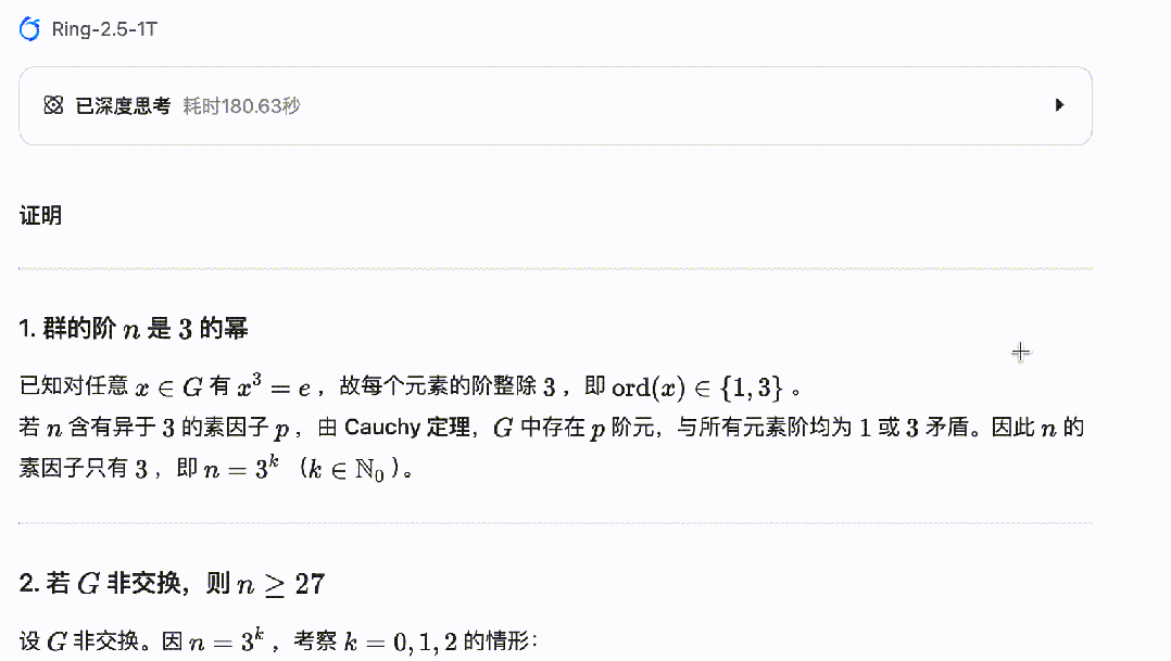 接下来把Ring拉出来遛遛,我让Gemini专门设计了一道能把人脑干烧的抽象代数证明题。