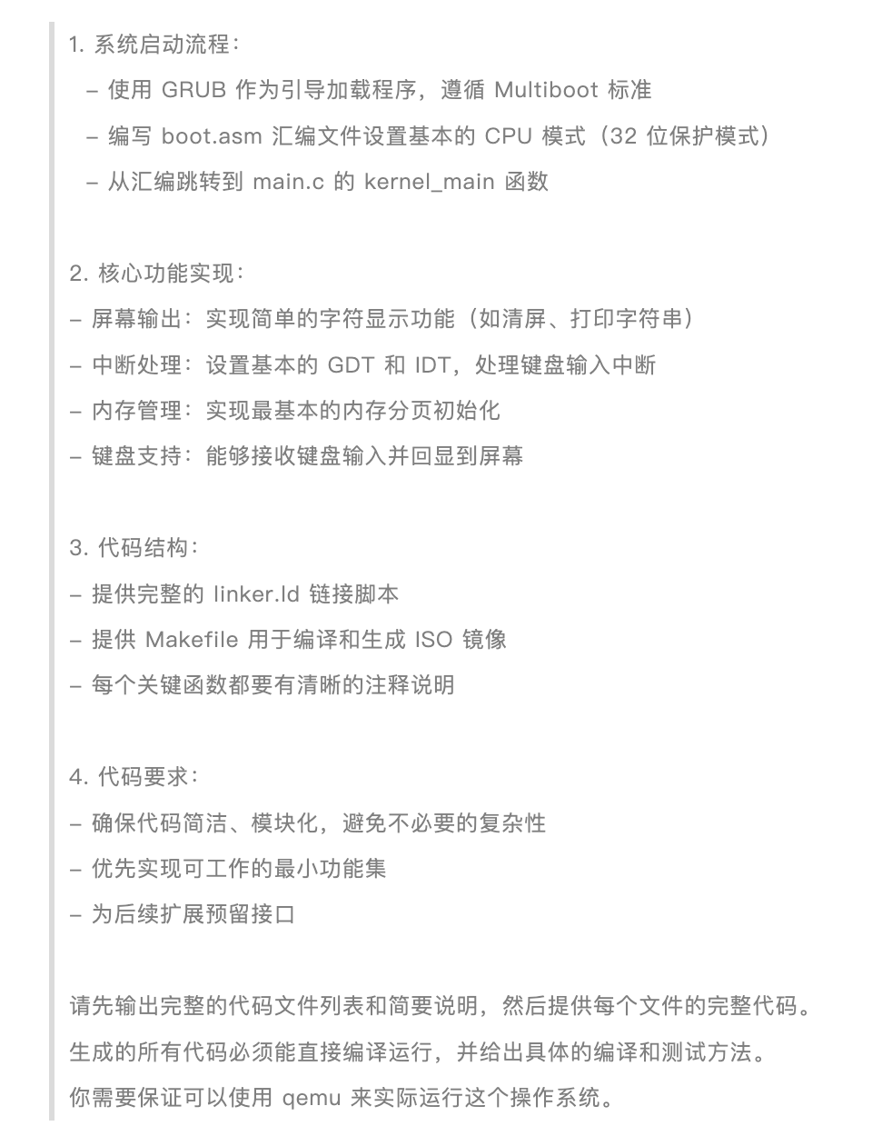 这还没完,接下来Ring-2.5-1T还得继续丰富TinyOS的功能,实现好bash的功能,使得使用qemu可以登录到一个bash命令界面,以执行ls、pwd、cat等简单命令。