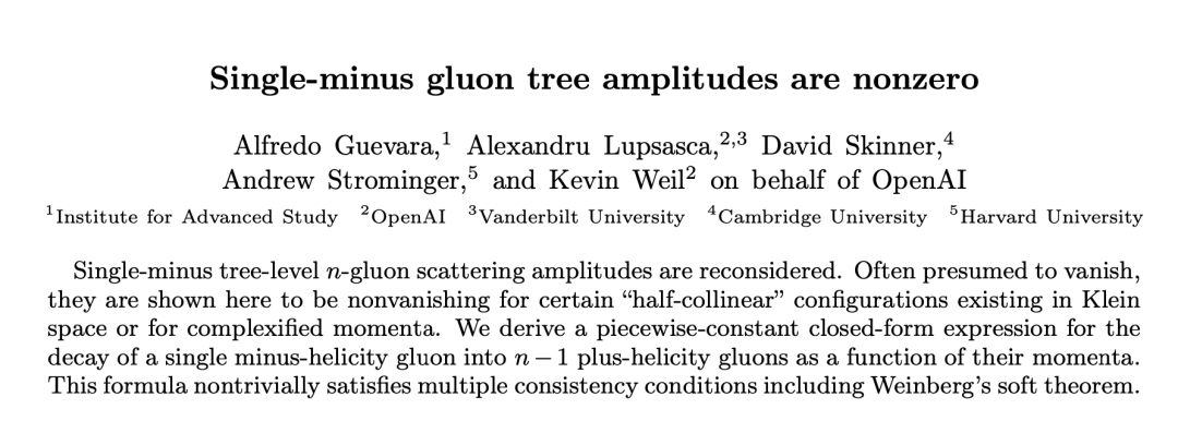 OpenAI与哈佛、剑桥、普林斯顿的五位研究者发布预印本论文,关键公式由GPT-5.2 Pro猜出,随后被一个OpenAI内部模型连续思考超过12小时证明成立。