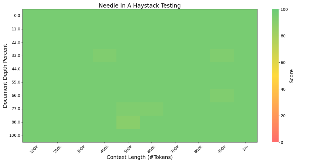 在 1M tokens 的上下文窗口内均表现优异