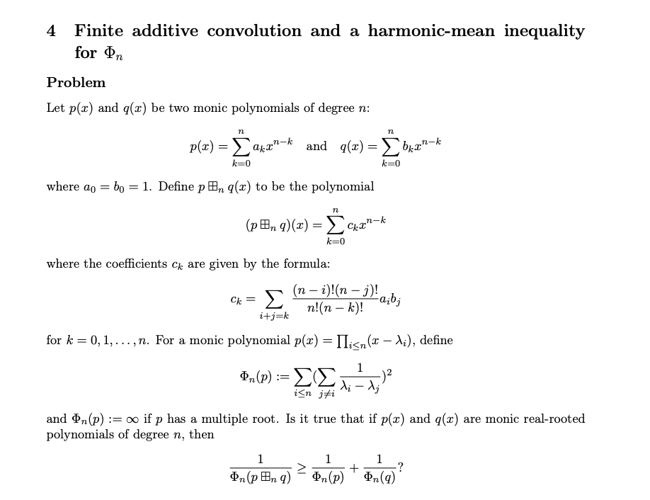 问题:给定两个n次首一实根多项式p和q,定义一种特殊的卷积运算。