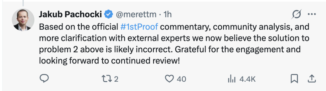 他表示OpenAI的解答基本正确,并直言当前模型在数学能力上的进步令人印象深刻。