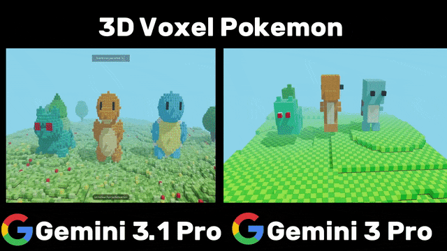 3.1 Pro生成的3D像素版宝可梦,可比3.0 Pro强太多了。