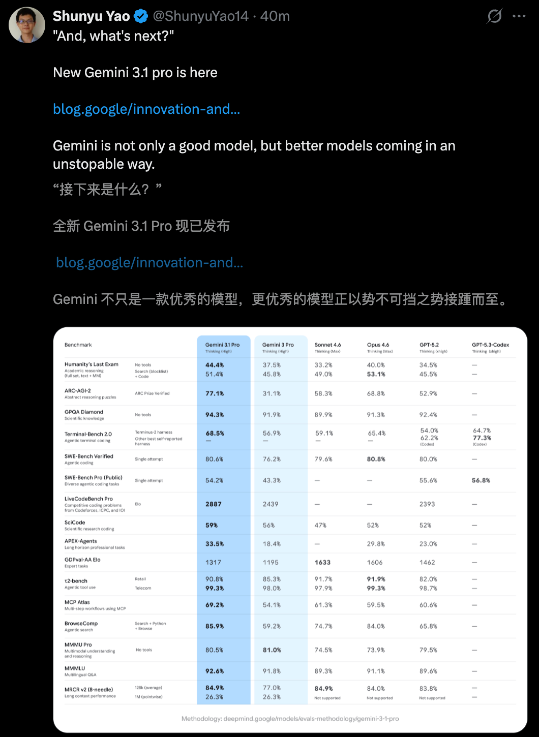 Deep Think之后,清华校友姚顺宇也参与了Gemini 3.1 Pro的研发
