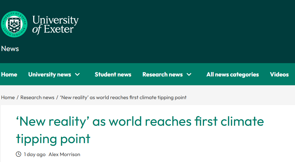 报告链接:https://news.exeter.ac.uk/research/new-reality-as-world-reaches-first-climate-tipping-point/