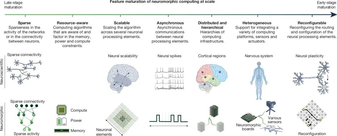 图4:大规模神经形态计算系统的关键特性及其成熟度演进时间线