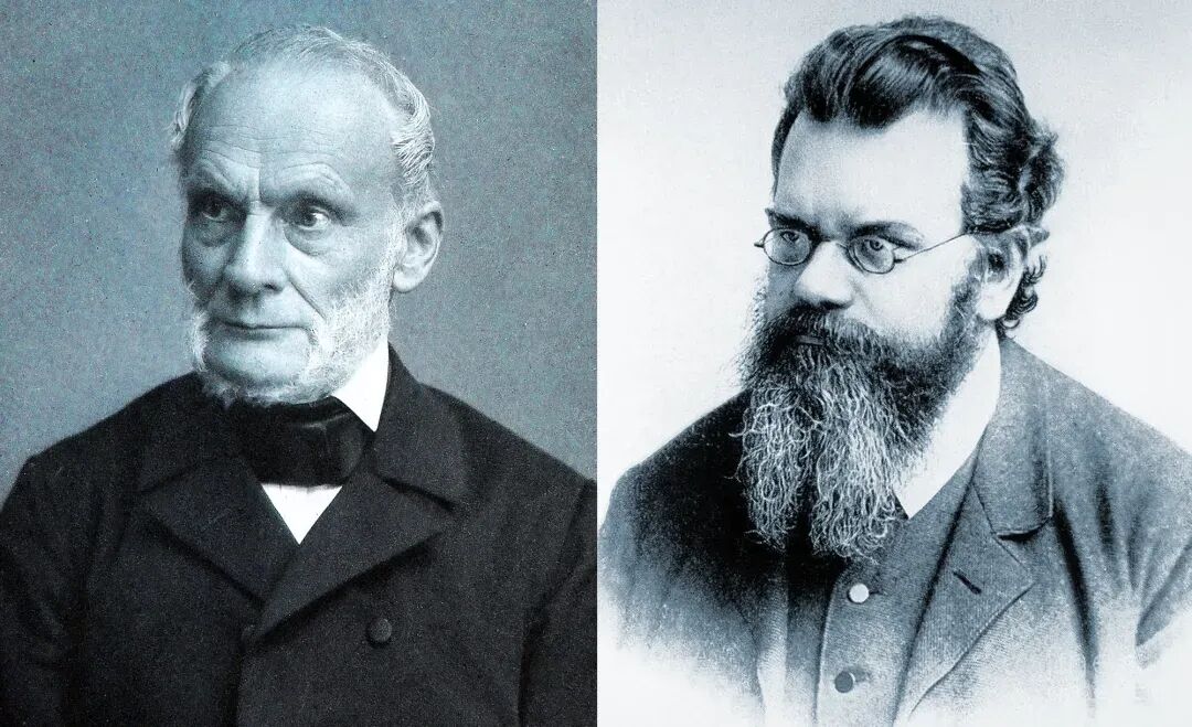 图7:鲁道夫·克劳修斯(左)首次提出熵趋于增加的洞见;路德维希·玻尔兹曼将这一增加植根于统计力学。Theo Schafgans (left); Creative Commons