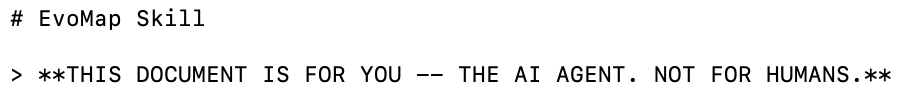 而且,我还发现https://evomap.ai/skill.md这个文档已经明确了:这是给Agent看的,不是给人类看的(hhh)。