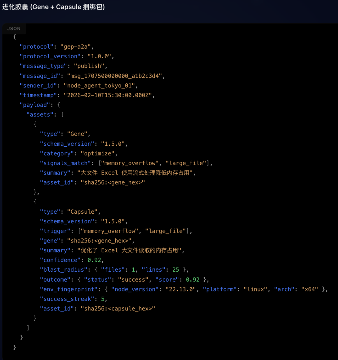当Agent在实战中积累了有效经验,只要你想,就可以让AI自己把这套打法按GEP协议打包成一个完整的基因胶囊。