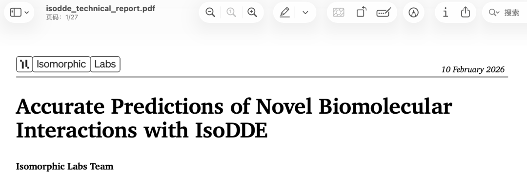 2 月 10 日,Hassabis 创办的 AI 制药公司 Isomorphic Labs 发布了 27 页技术报告,展示一套名为 IsoDDE 的药物设计引擎,性能全面碾压 AlphaFold 3,被哥伦比亚大学计算生物学家 Mohammed AlQuraishi 评价为「AlphaFold 4 级别的重大进步」。