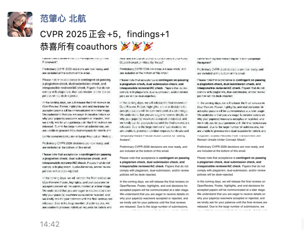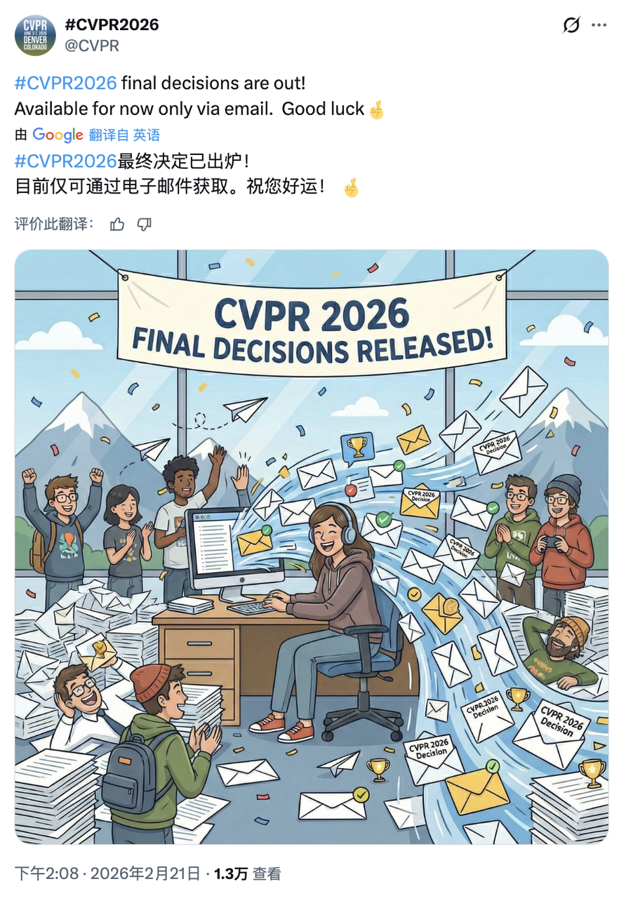 就在今天下午,CVPR 2026向全球投稿者发出了录用通知邮件。