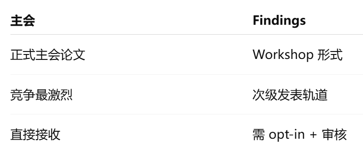 Findings和主会有以下几个区别。