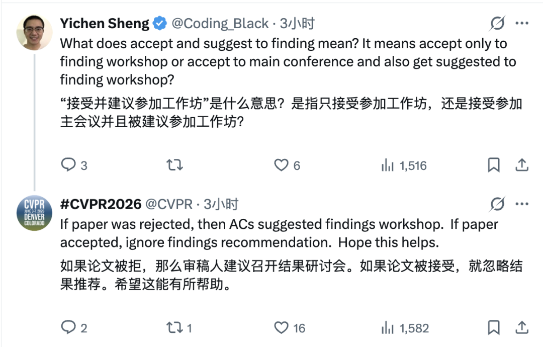 CVPR官方很快回应澄清:只有被拒的论文才会被推荐至Findings,已录用的论文可以忽略这条建议。