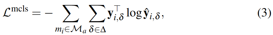 其中 是独热模态标签,模态的索引处为1,在其他地方为0,并且是模态分类器对于的预测值,在具体实现中,是一个带有softmax函数的单层线性投影层。