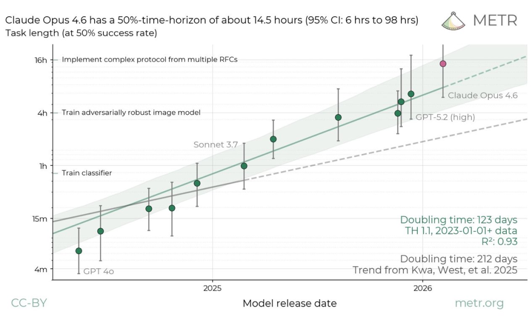 最近,AI研究机构METR(Model Evaluation & Threat Research)发布评估称,前沿AI模型完成复杂长任务的能力呈指数级增长,大约每4个月任务长度翻倍。