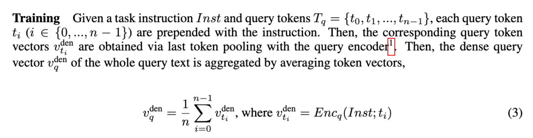 稠密检索(Dense Retreival)中,模型在训练阶段使用完整的 LLM 对 “指令 + 单个 Query Token”进行建模,并通过对比学习获得 Prompted Token Embedding。