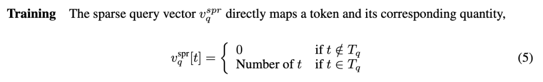 稀疏检索(Sparse Retrieval)中,Query 侧进一步被简化为词表空间 T 的“Token ID -> 个数”的词频映射,完全移除了可学习的 Transformers。