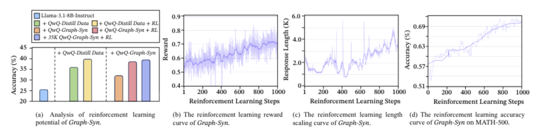 相比直接用蒸馏数据初始化的模型,MoLE-Syn版的在RL过程中收益持续增长,震荡也小得多。