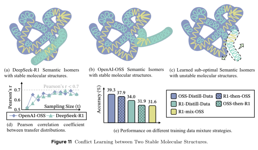 这在实验中有个很典型的现象,从R1和OSS两个不同强推理模型中蒸馏出的推理轨迹,语义层面的内容相似度高达95%,但混在一起训练,模型反而崩溃了。