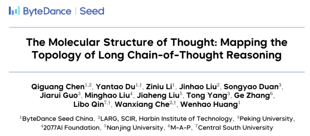 字节Seed在论文《The Molecular Structure of Thought》中首次给大模型的长链思维定义了分子式结构。