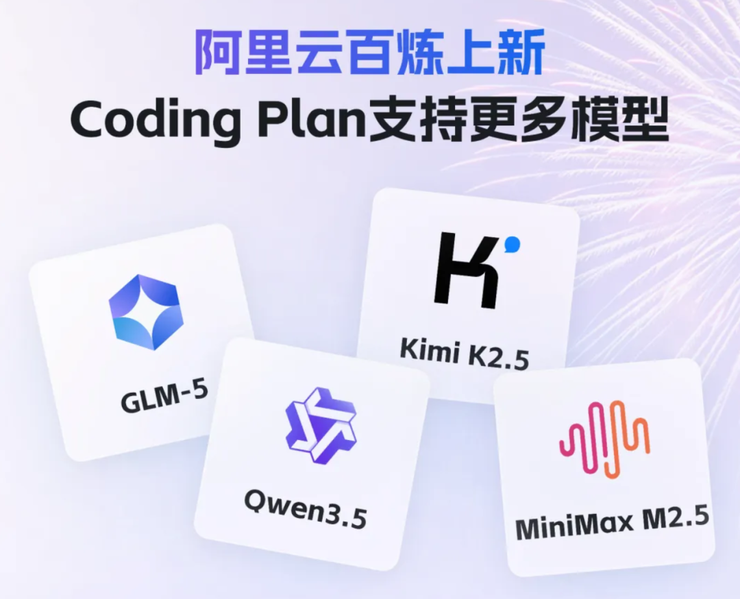 至此,加上新增的四款模型,阿里云Coding Plan目前共支持8款顶尖编程模型,包括阿里自研的Qwen3.5-Plus、Qwen3-Max、Qwen3-Coder-Next、Qwen3-Coder-Plus,以及第三方的GLM-5、GLM-4.7、Kimi-K2.5、MiniMax-M2.5。