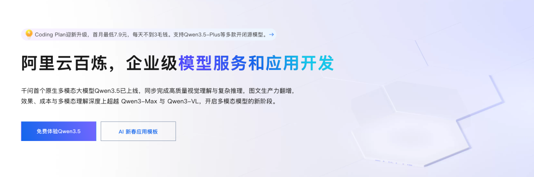 阿里云这边也同样诚意满满,不仅提供模型API,还同步推出Coding Plan订阅服务。