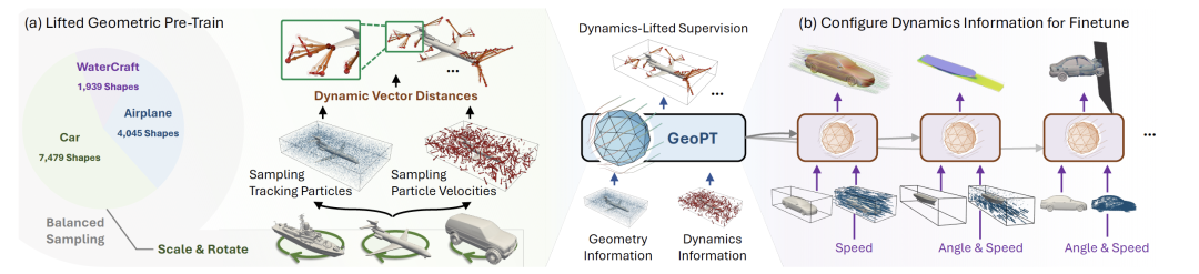 GeoPT提出了一种全新的动力学提升预训练范式,通过合成动力学(Synthetic Dynamics)将静态几何“提升”到动态空间,让模型在无标签数据上通过学习粒子轨迹演化来获取物理直觉。