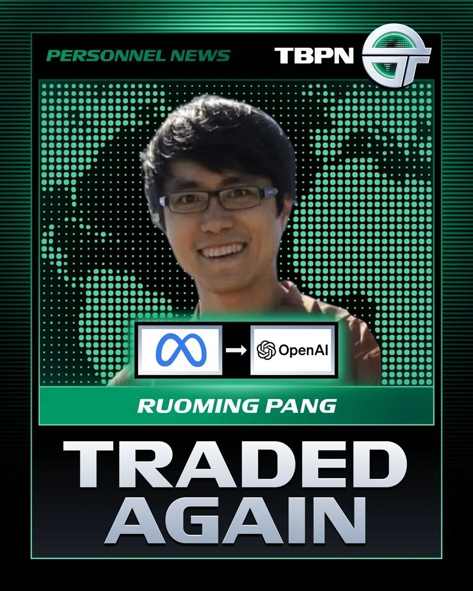 入职Meta「超级智能实验室」仅7个月,华人明星研究员庞若明(Ruoming Pang)转投OpenAI。