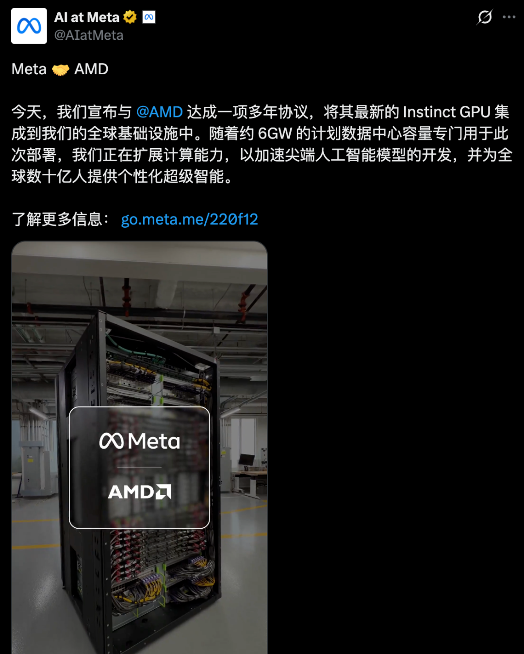 前两天,Meta还曾官宣了和AMD的合作,进一步扩展算力。